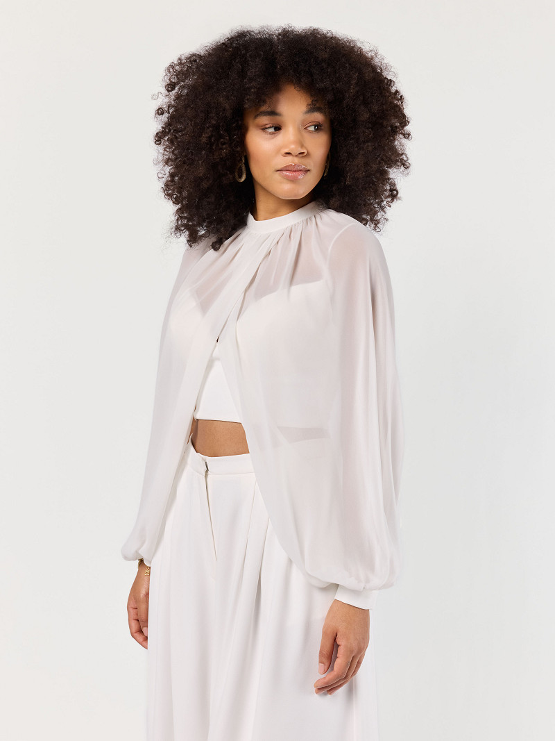 - Trendy top met lange mouw van ivoorkleurige crêpe georgette uit de Poirier Collection.