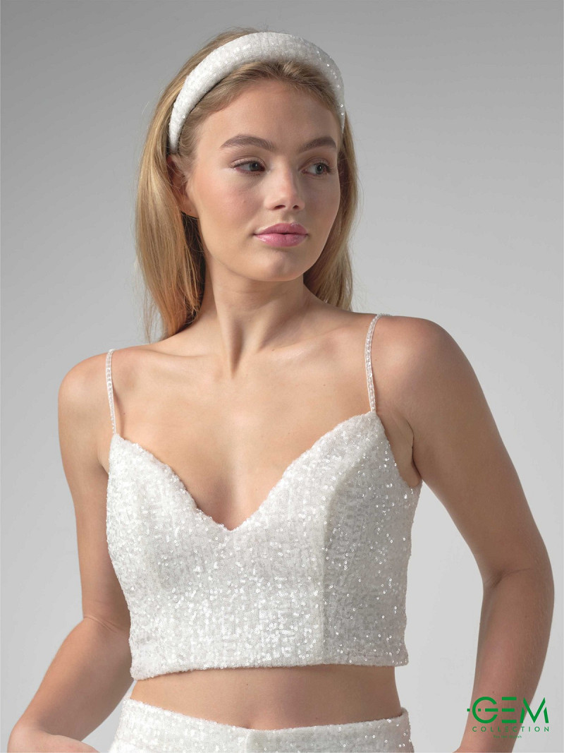 Bridal top met spaghettibandjes gemaakt van paillettenstof | GEM Collection | Mica-lijn