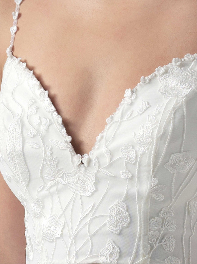 - Heeft ivoorkleurige, versierde spaghettibandjes.