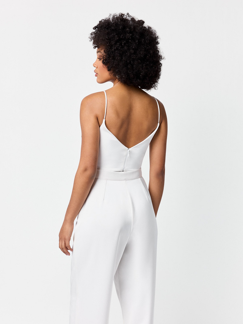 Bridal top gemaakt van ivoorkleurige matte satijn met spaghettibandjes en blinde ritssluiting middenachter | GEM Collection | Lucia-lijn
