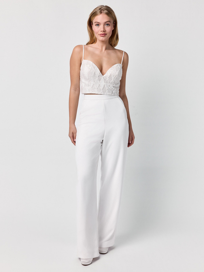 T-75422 - Elegante korte tule top met pailletten en beads in ruitvorm