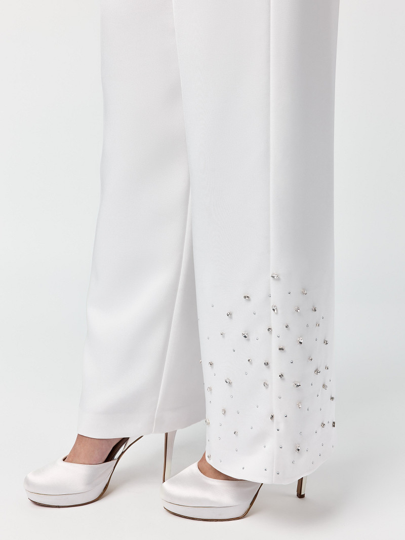 TR-75452 - Elegante pantalon van matte satijn met een prachtige versiering van strasssteentjes | Gabrielle-lijn