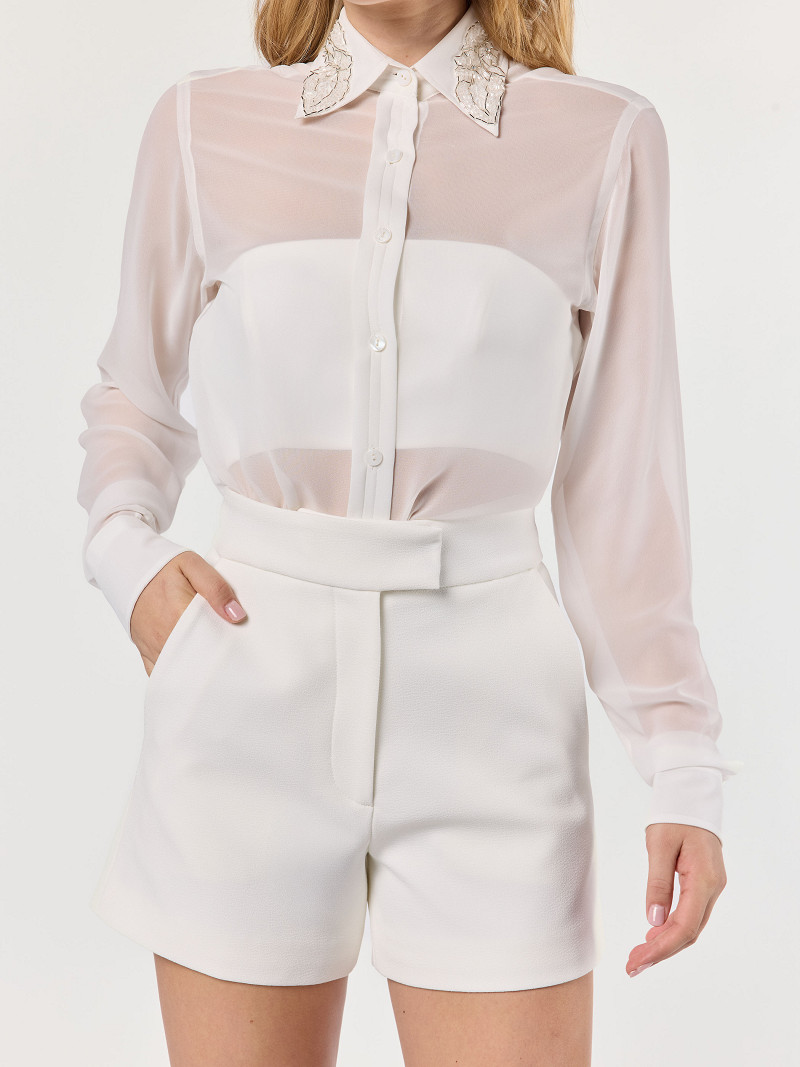 - ‘Korte’ short van ivoorkleurige bubble crêpe uit de Ivy-lijn van de GEM Collection.