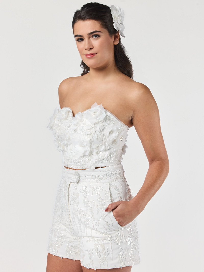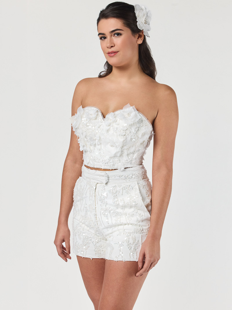 - Short van ivoorkleurige crêpe met tule uit de Roxy-lijn van de GEM Collection.