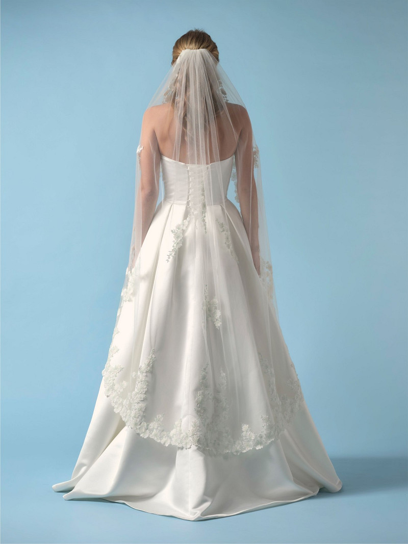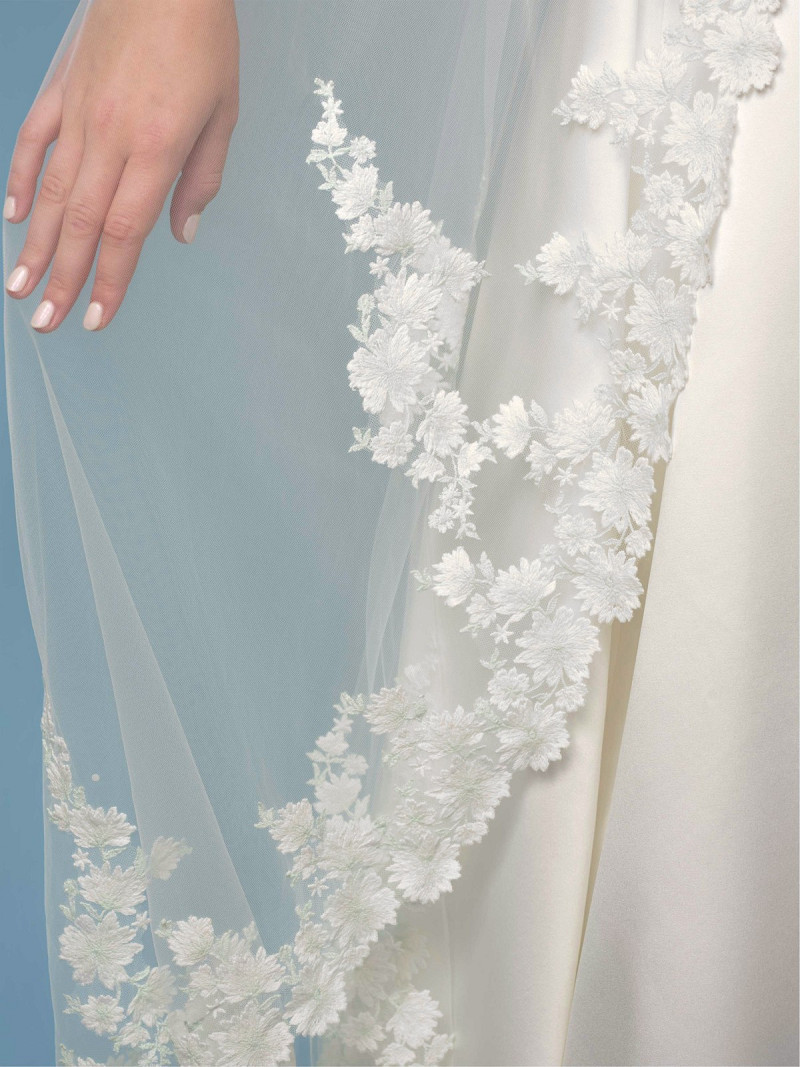 Sluier gemaakt van enkellaagse soft-tule versierd met geborduurde bloemen | Lengte: 150 cm