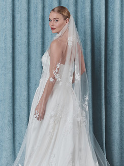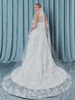 S75525-280/1/SF - Luxe sluier van enkellaagse soft-tule met schitterend borduurwerk in bloem- design