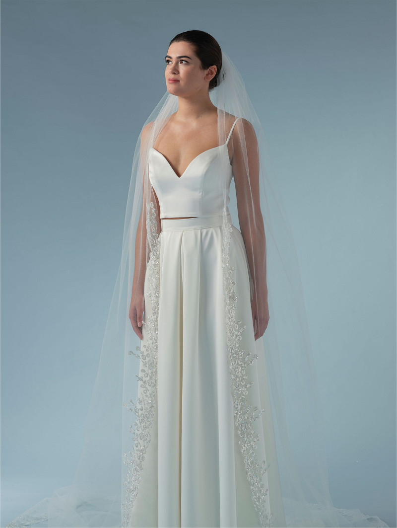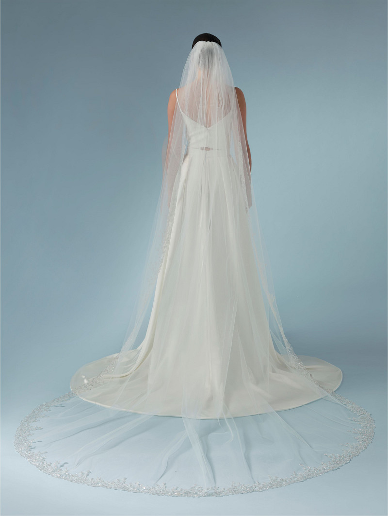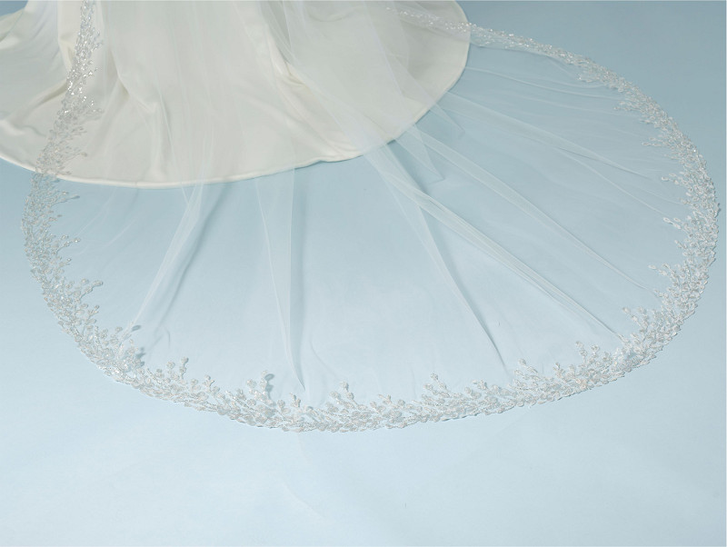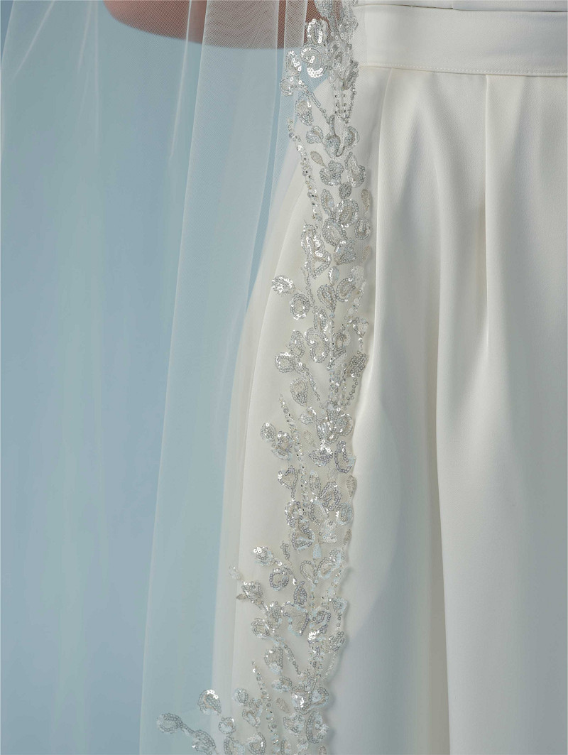 Sluier gemaakt van enkellaagse medium-tule versierd met een bloempatroon van pailletten | lengte: 300 cm