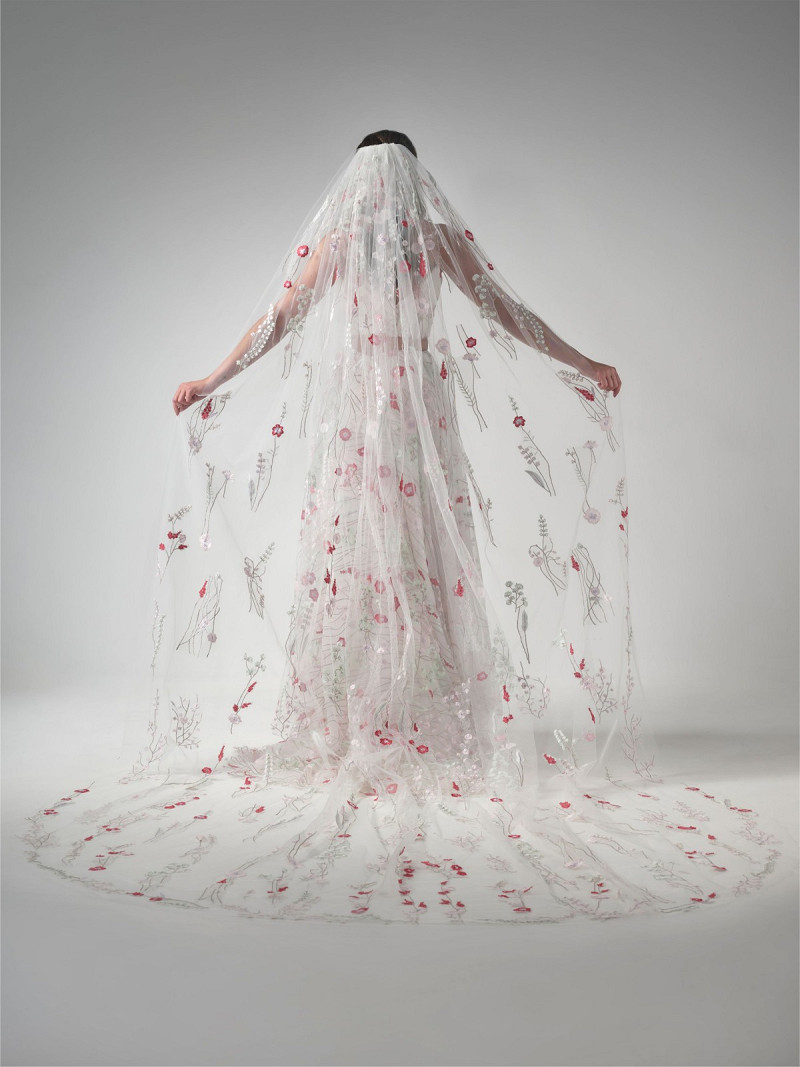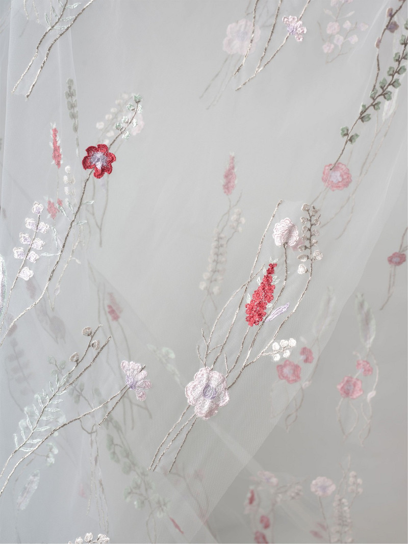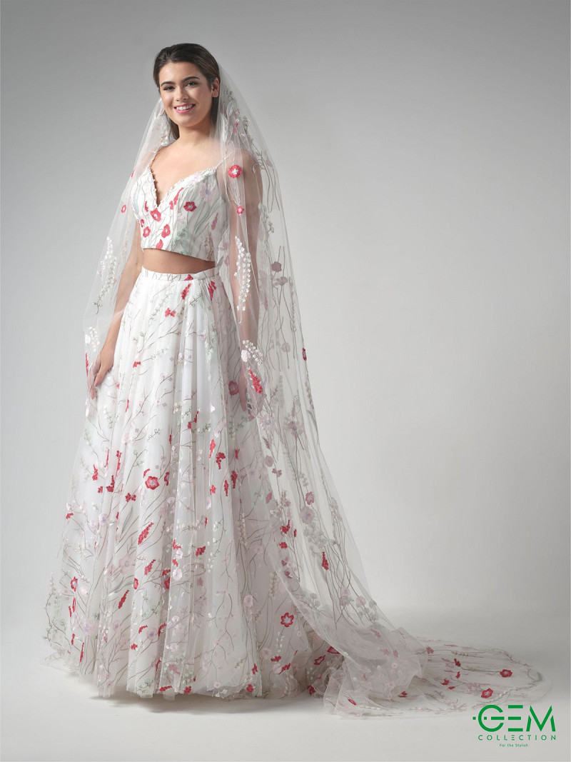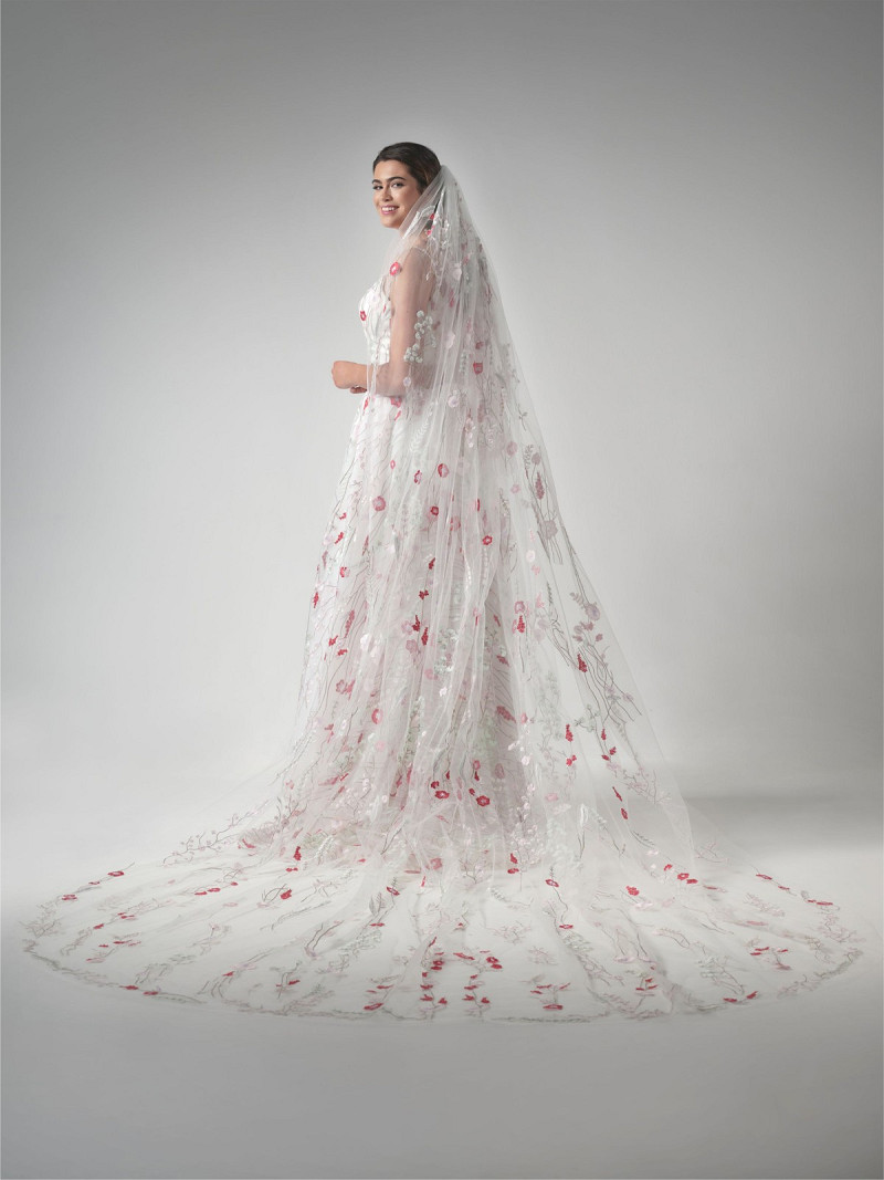 Sluier gemaakt van enkellaagse medium-tule versierd met kleurrijke geborduurde florale vormen | Lengte: 350 cm | GEM Collection | Geena-lijn